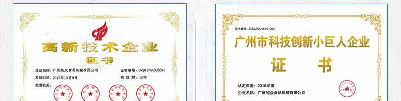 廣州旭眾食品機械有限公司是一家集科研開發(fā),生產(chǎn)設(shè)計,營銷服務(wù)為一體的現(xiàn)代化生產(chǎn)企業(yè)。現(xiàn)代化生產(chǎn)車間,精湛制造技術(shù),所產(chǎn)機械歷經(jīng)市場重重考驗,不斷贏得海內(nèi)外客戶的贊譽。