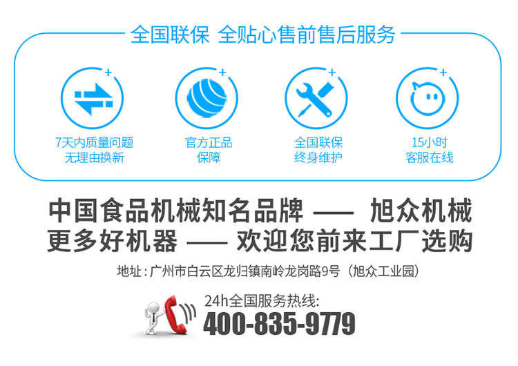 廣州旭眾食品機(jī)械有限公司是一家集科研開(kāi)發(fā),生產(chǎn)設(shè)計(jì),營(yíng)銷服務(wù)為一體的現(xiàn)代化生產(chǎn)企業(yè)。現(xiàn)代化生產(chǎn)車間,精湛制造技術(shù),所產(chǎn)機(jī)械歷經(jīng)市場(chǎng)重重考驗(yàn),不斷贏得海內(nèi)外客戶的贊譽(yù)。