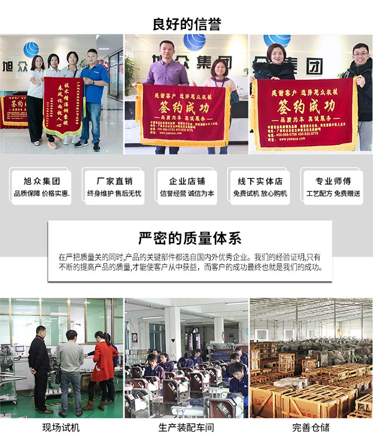 廣州旭眾食品機械有限公司是一家集科研開發,生產設計,營銷服務為一體的現代化生產企業。現代化生產車間,精湛制造技術,所產機械歷經市場重重考驗,不斷贏得海內外客戶的贊譽。