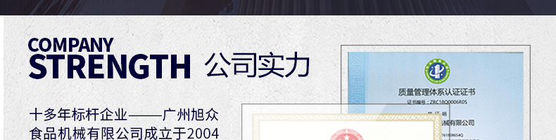 廣州旭眾食品機械有限公司是一家集科研開發,生產設計,營銷服務為一體的現代化生產企業。現代化生產車間,精湛制造技術,所產機械歷經市場重重考驗,不斷贏得海內外客戶的贊譽。